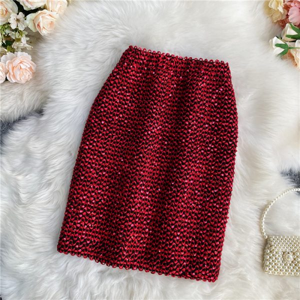 Autumn Women Sequin Pencil Skirt Sexy High Waist Slim Bodycon Fladas Female Solid Yellow/Red/Black Club Party Skirts New