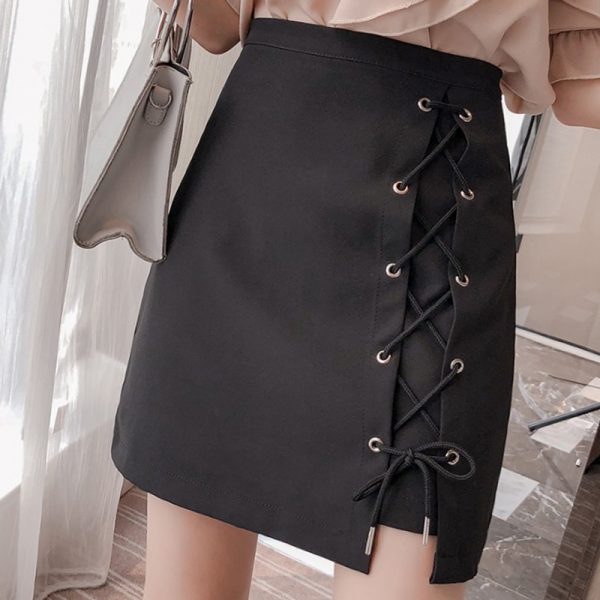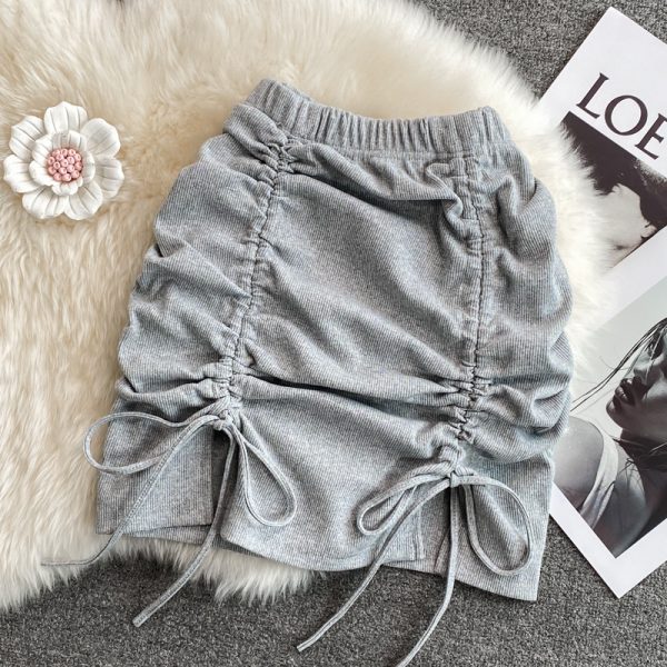 Black/Gray Sexy Drawstring Mini Skirt For Women High Waist Slim Pencil Faldas Summer Female Short Saias New Fashion