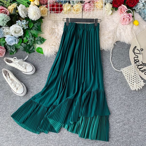 High Waist Big Swing Irregular Skirt Women Green/Khaki/Brown Casual A-line Female Skirts Spring Summer Saia Faldas Fashion