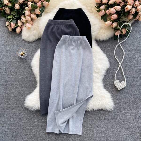 Sexy Knitted Bodycon Skirt Women Black/Gray High Elastic Waist Slim Pencil Saias Female Casual Faldas Summer New Fashion