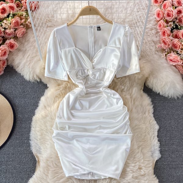 Sexy Women’s Mini Dress Summer White/Black V-Neck High Waist Draped Party Bodycon Vestidos Female Slim Sheath Short Robe