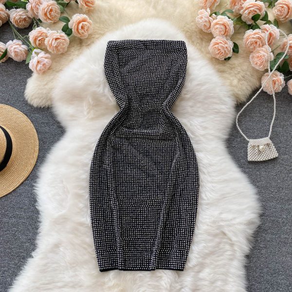 Sexy Strapless Bodycon Diamonds Mini Dress For Women Club Party Off Shoulder Slim Black/White Vestidos Summer Short Robe