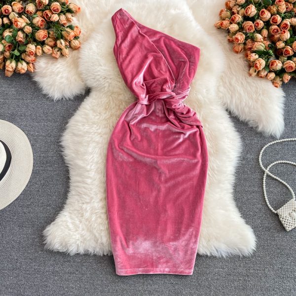 Sexy Women Bodycon Party Dress Summer Diagonal Collar Sleeveless High Waist Off Shoulder Slim Vestidos Ladies Velvet Robe