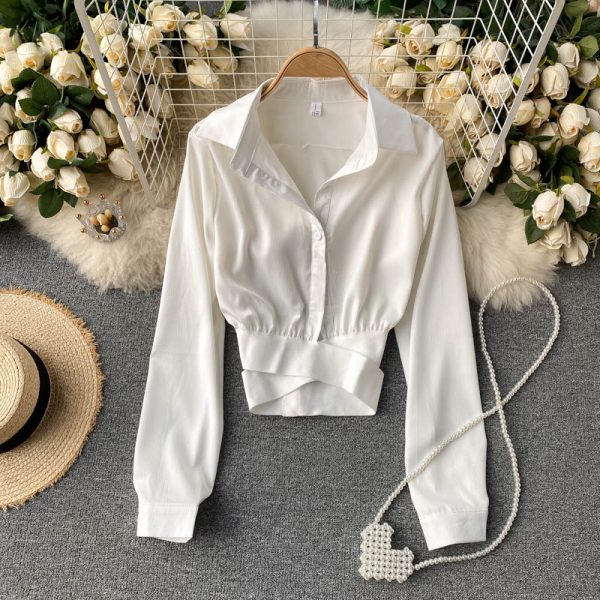 Black/White/Red Women Bandage Blouse Spring Autumn Turn-Down Collar Single Breasted Long Sleeve Short Tops Female Blusas