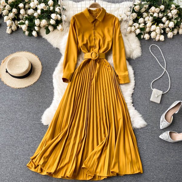 Purple/Yellow/Black Draped Long Dress Women Vintage Single Breasted Long Sleeve Pleated Robe Female Elegant Robe Spring Autumn