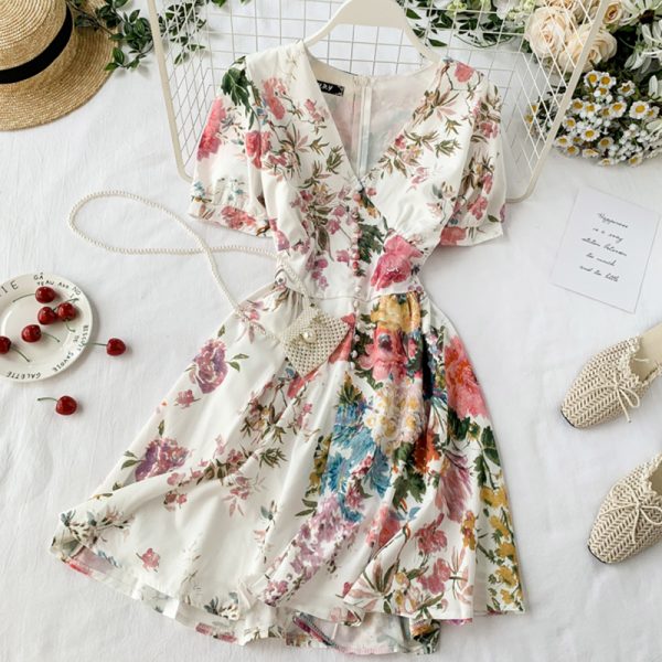 Runway Designer Summer Bohemian Single Breasted Print Dress Short Sleeve A-line Beach Party Mini Dress Vestidos