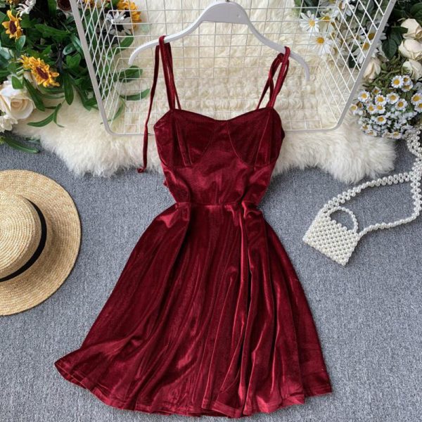 Runway Designer Black/Pink/Red Sexy Strap Dress Vintage Sleeveless High Waist Velvet Mini Dress Summer Party Female Vestido