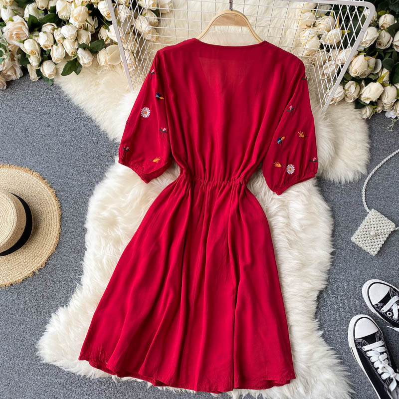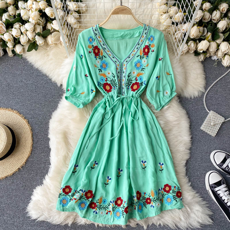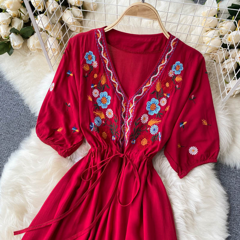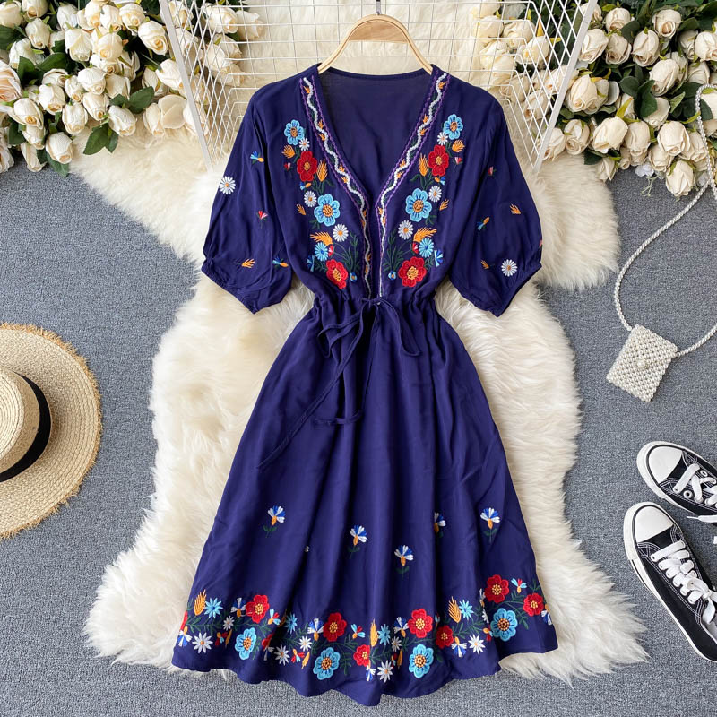 Cheap Dresses, Buy Quality Women’s Clothing Directly from China Suppliers:Bohemian Vacation Beach Mini Dress Women Sexy V Neck Short Sleeve High Waist Embroidery Dresses Female Indie Folk Vestidos