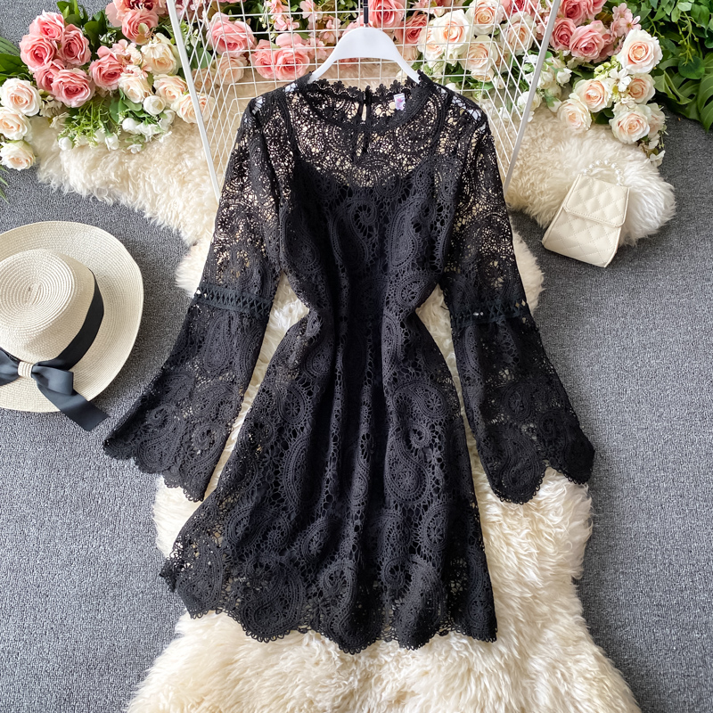 Cheap Dresses, Buy Quality Women’s Clothing Directly from China Suppliers:Sweet Pink/Black/White Lace Hollow Out Mini Dress Women Autumn Elegant Round Neck Long Sleeve A Line Vestidos Female Robe