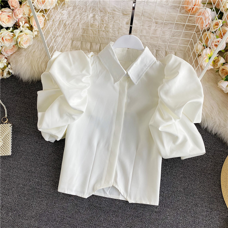 Cheap Blouses & Shirts, Buy Quality Women’s Clothing Directly from China Suppliers:Vintage Green/Black/White Blouse Women Casual Turn Down Collar Puff Short Sleeve Tops Female Slim Shirts Autumn New Blusas