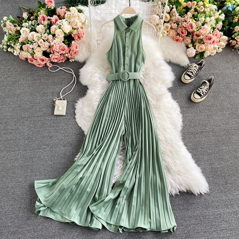 Cheap Jumpsuits, Buy Quality Women’s Clothing Directly from China Suppliers:Women’s Romper Spring Autumn Turn Down Collar Sleeveless Vintage Playsuits Female Off Shoulder Pleated Jumpsuit New Fashion