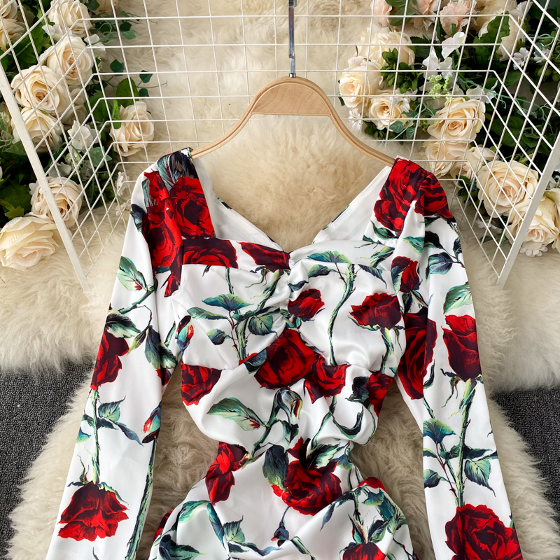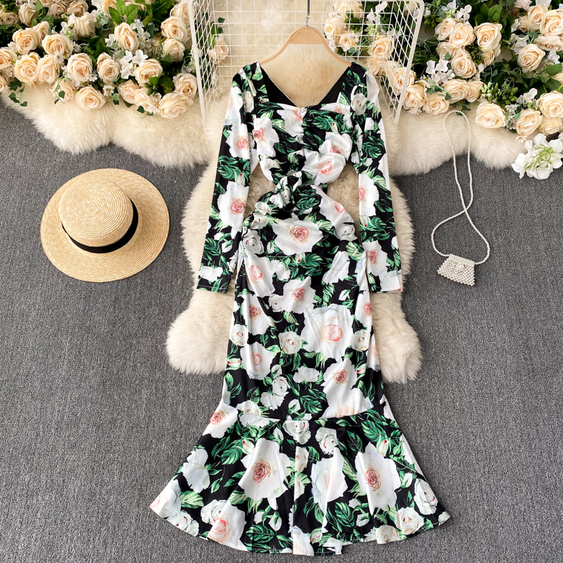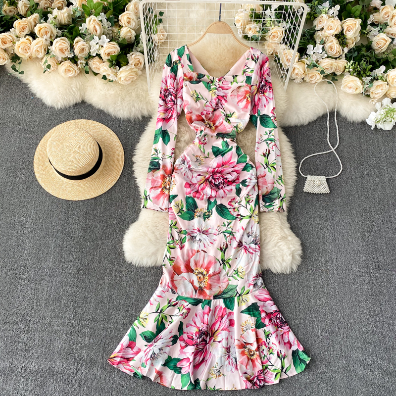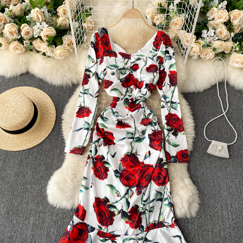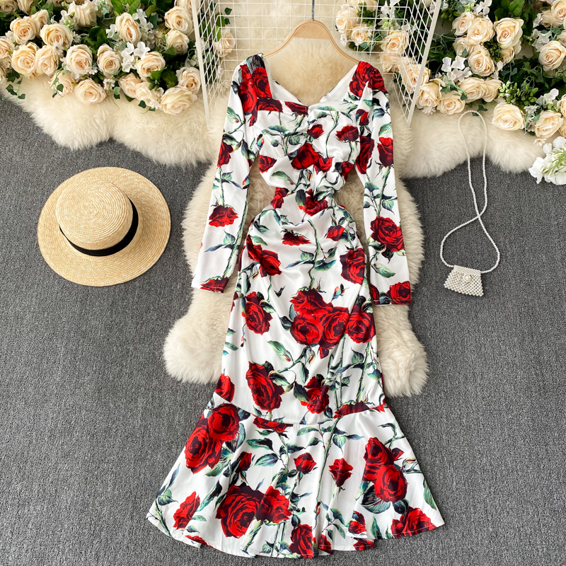 Cheap Dresses, Buy Quality Women’s Clothing Directly from China Suppliers:Bohemian Red/Green/Pink Flower Print Mermaid Dress Women Casual Square Collar Long Sleeve Ruffle Hem Vestidos Spring Autumn New