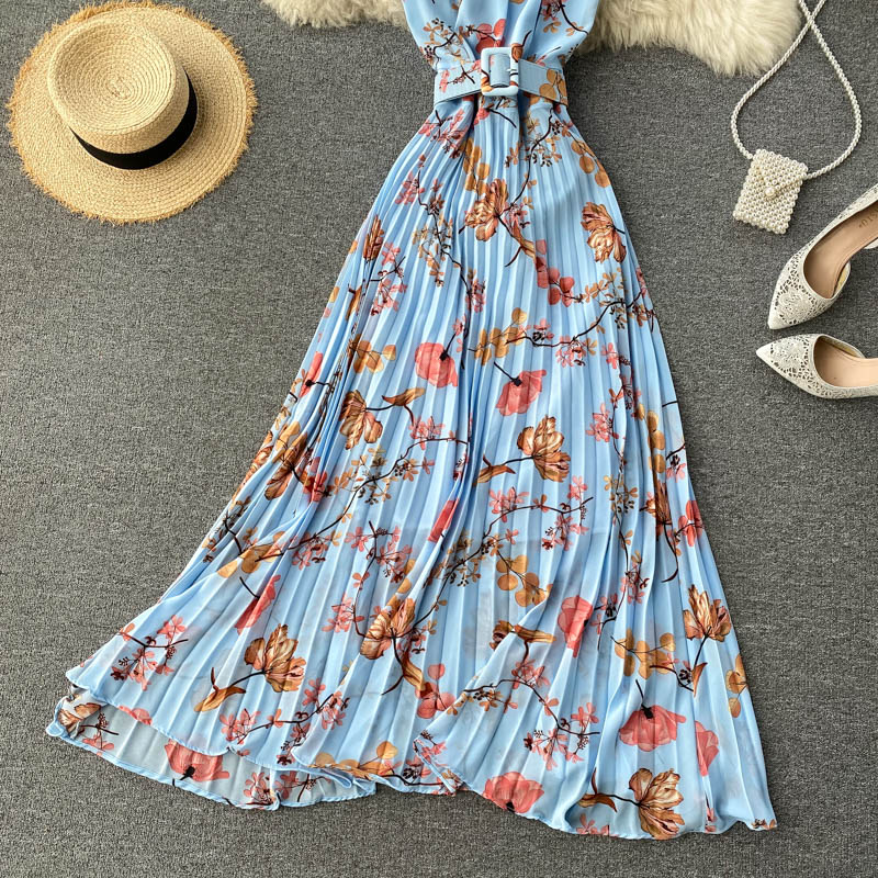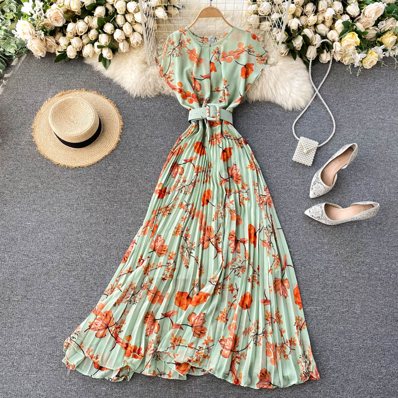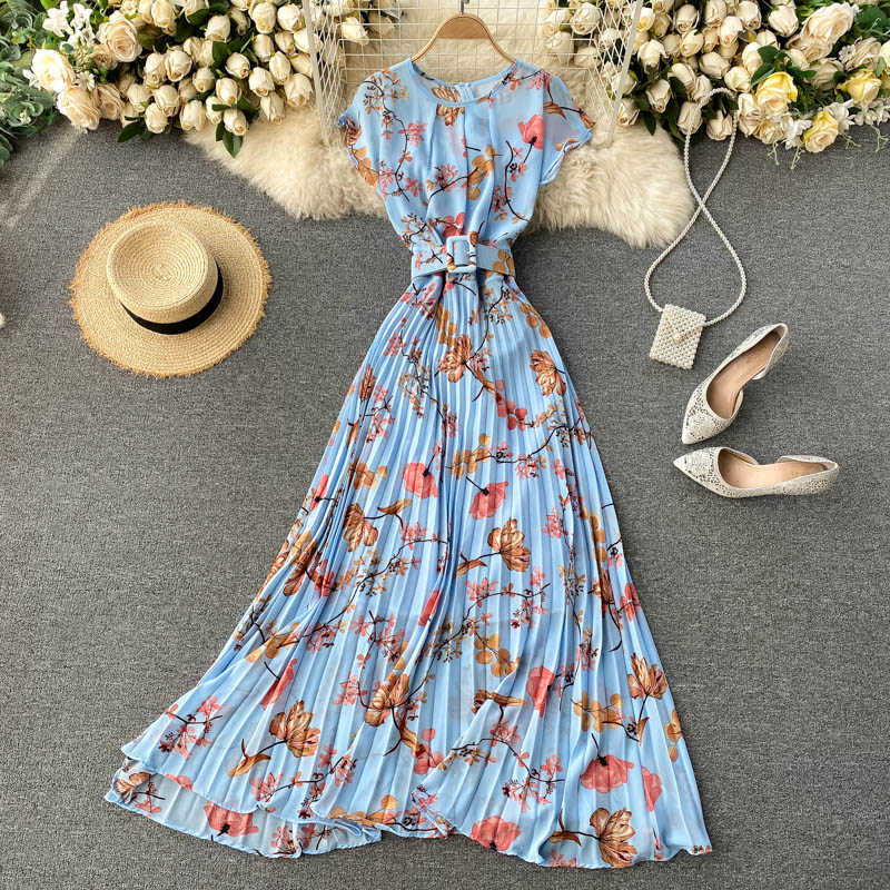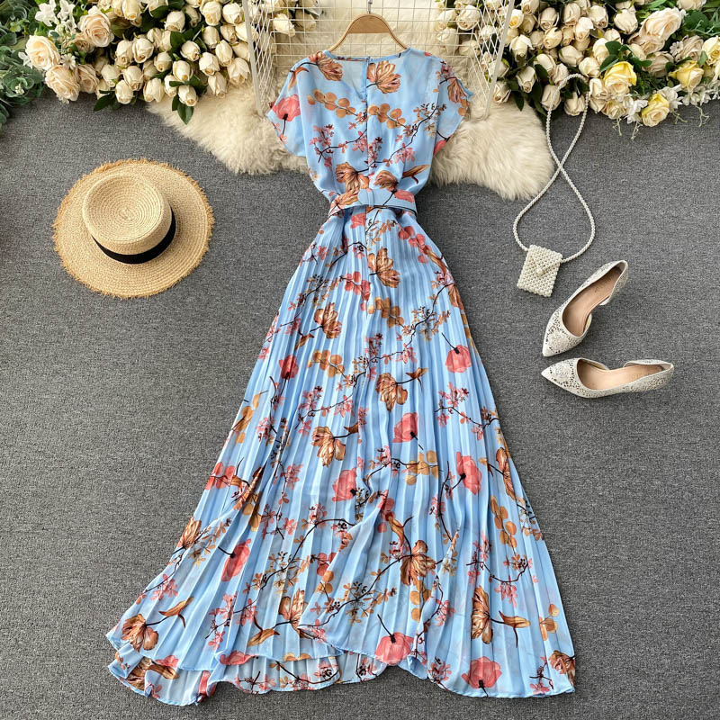 Cheap Dresses, Buy Quality Women’s Clothing Directly from China Suppliers:Boho Chic Women Floral Draped Long Dress Vacation Beach Party Vestidos Female Round Neck Sleeveless Pleated Robe Spring Autumn