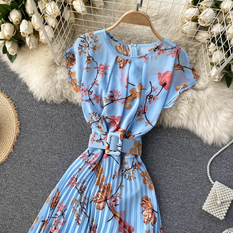 Holiday Women Chiffon Dress Summer Elegant Slash Neck Short Sleeve Ruffle A-line Casual Vintage Dresses For Female Vestidos