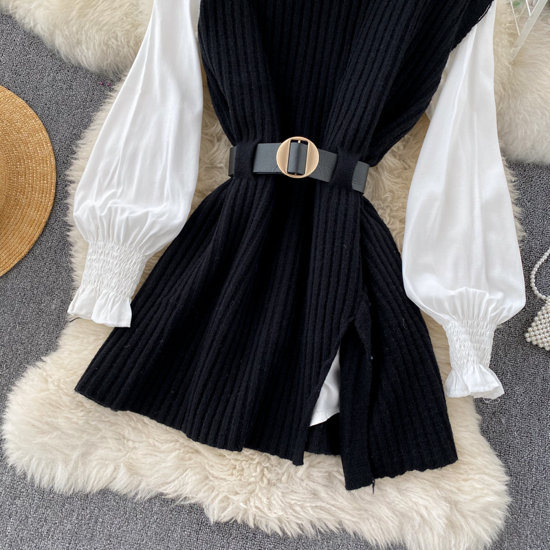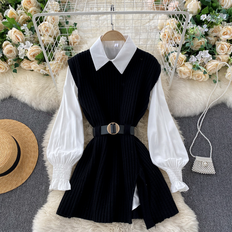 Cheap Women’s Sets, Buy Quality Women’s Clothing Directly from China Suppliers:Office Ladies Two Piece Set Brown/Black Knit Vest And Turn Down Collar Single Breasted White Blouse Female OL Spring Autumn