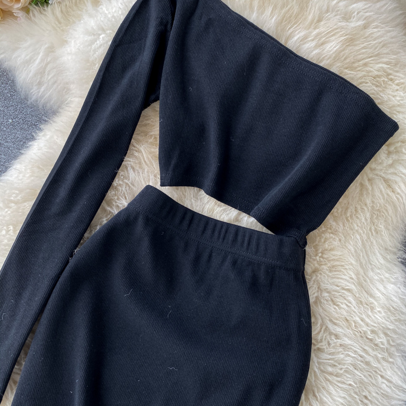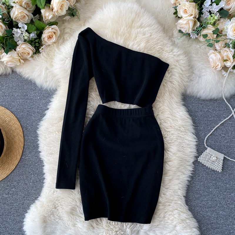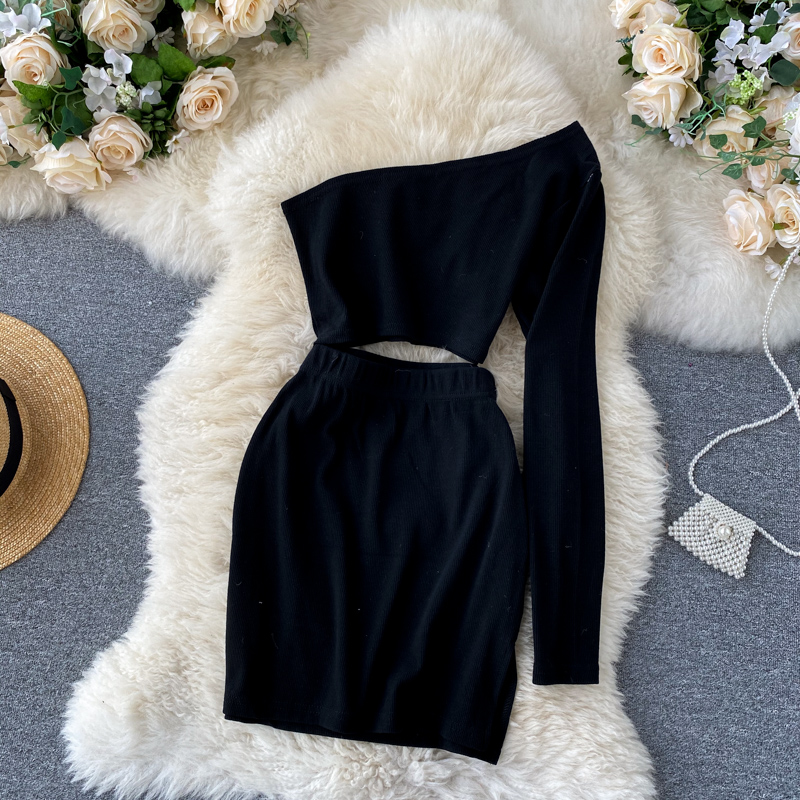 Spring Autumn Sexy Skew Collar Black Bodycon Mini Dress Women Elegant Hollow Out One Shoulder Vestidos Female New Fashion