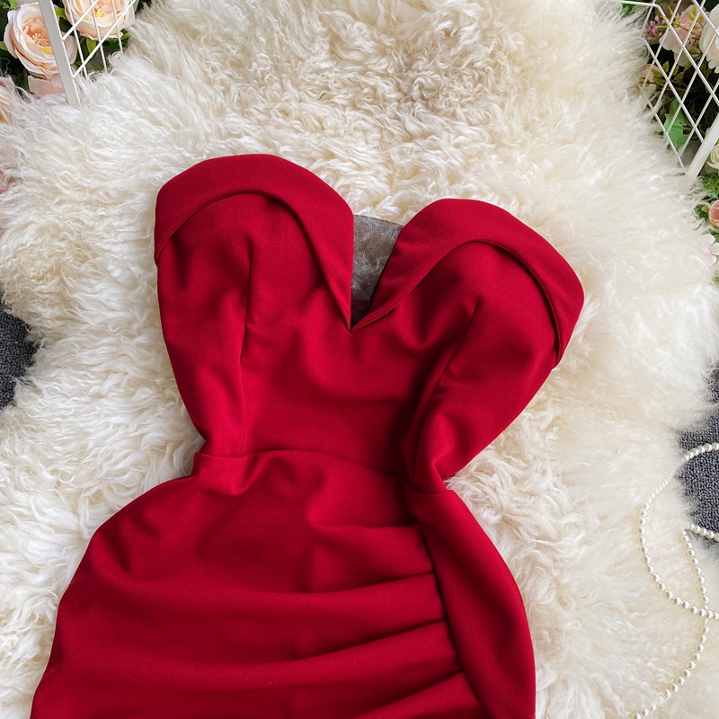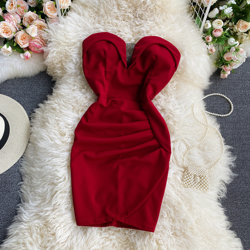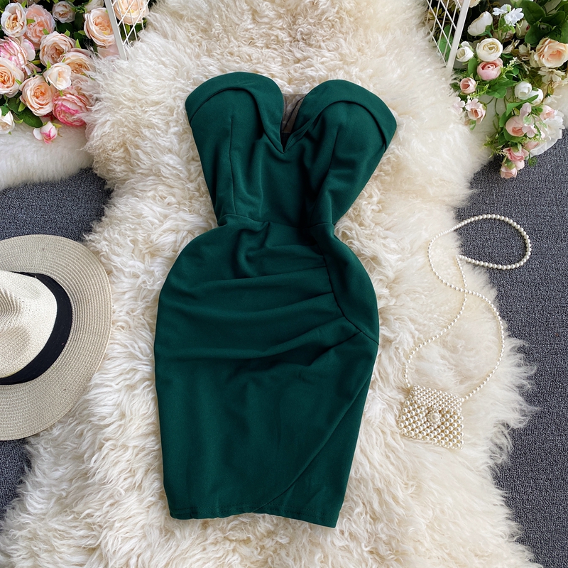 Spring Summer Sexy Strapless Bodycon Dress Women Party Open Back High Waist Slim Green/Red/Black Mini Vestidos New Fashion