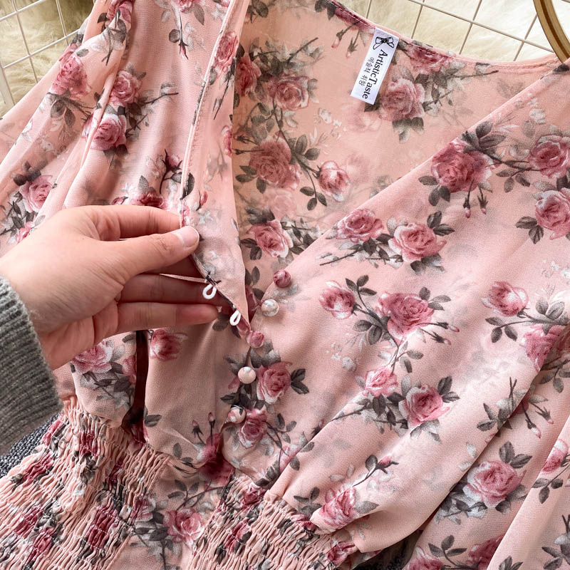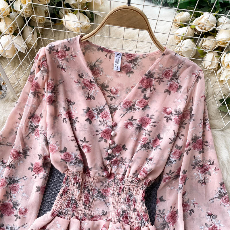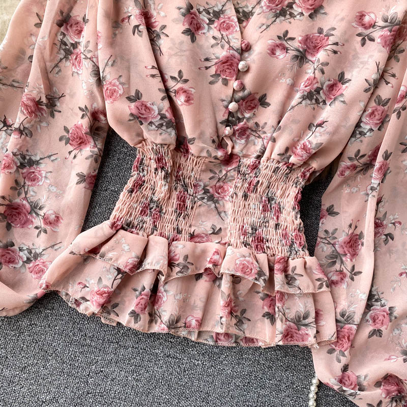 Cheap Blouses & Shirts, Buy Quality Women’s Clothing Directly from China Suppliers:Black/Beige/Pink Flower Printed Chiffon Blouse Women Sweet V Neck Lantern Long Sleeve Short Tops Female Elegant Shirt Spring New