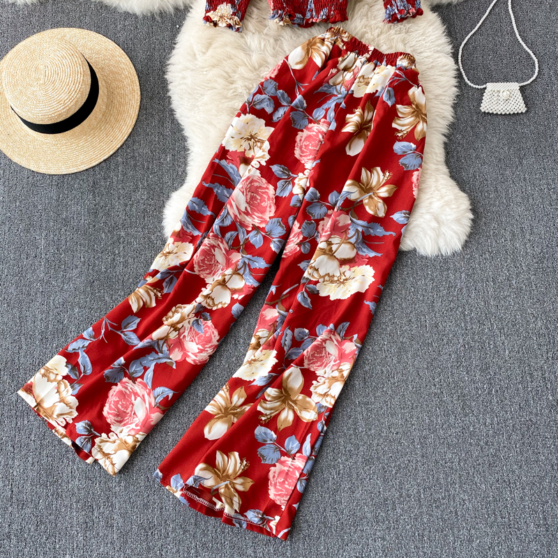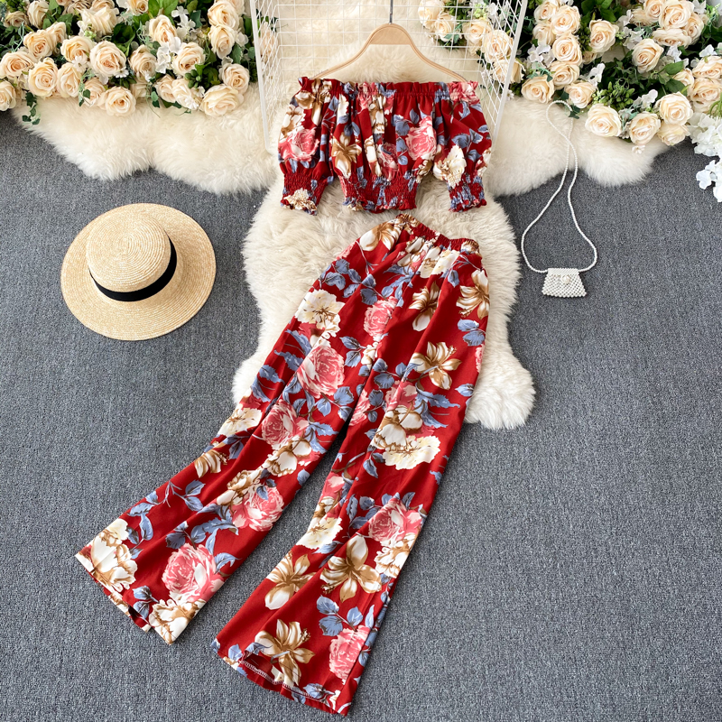 Cheap Women’s Sets, Buy Quality Women’s Clothing Directly from China Suppliers:Summer Bohemian Vacation Beach 2pcs Set Women Sexy Slash Neck Short Sleeve Tops + High Waist Wide Leg Pants Two Piece Suit New