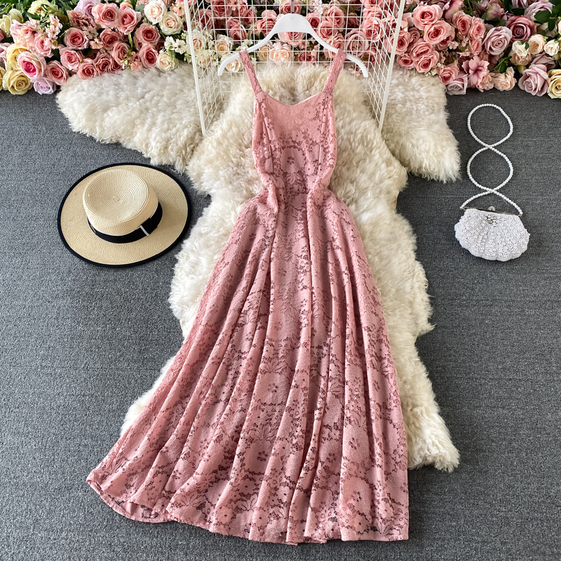 Cheap Dresses, Buy Quality Women’s Clothing Directly from China Suppliers:Vintage Spaghetti Strap Lace Midi Dress Women Sexy Red/Pink/Yellow Open Back High Waist Vestidos Female Summer New Fashion