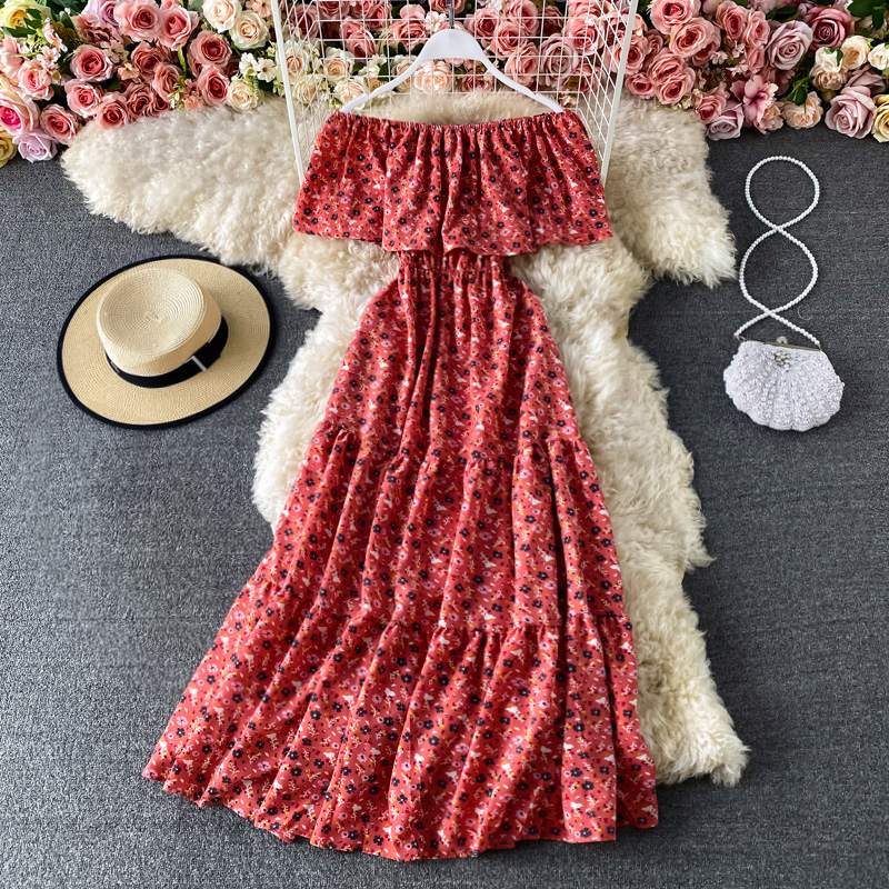 Cheap Dresses, Buy Quality Women’s Clothing Directly from China Suppliers:Sexy Slash Neck Midi Dress Women Bohemian Floral Printed Robe Female Ruffle Big Swing Chiffon Vestidos Female New Fashion