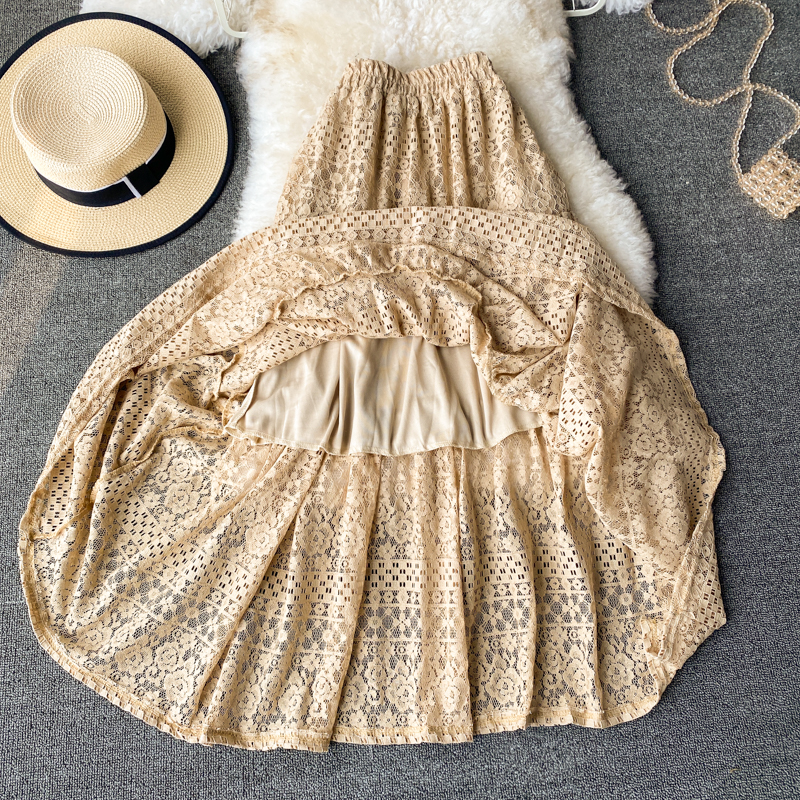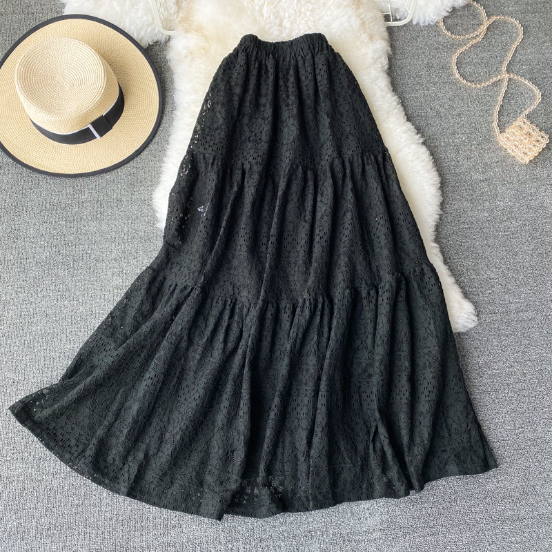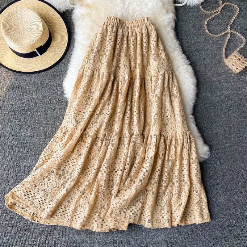 Sweet Khaki/Black/White Lace Skirt Women Elegant High Elastic Waist A-Line Faldas Female Korean Fashion Saia Ladies New