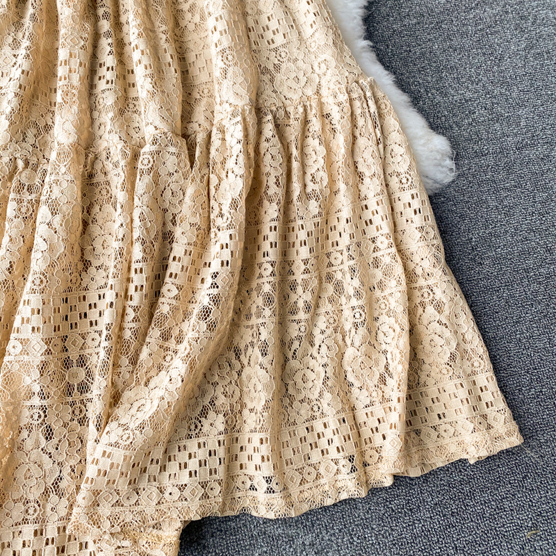 Korean Chic Women Hollow Out Midi Dress Women Short Sleeve Round Neck Sashes Dresses Female Big Swing Vestidos Fashion Fall