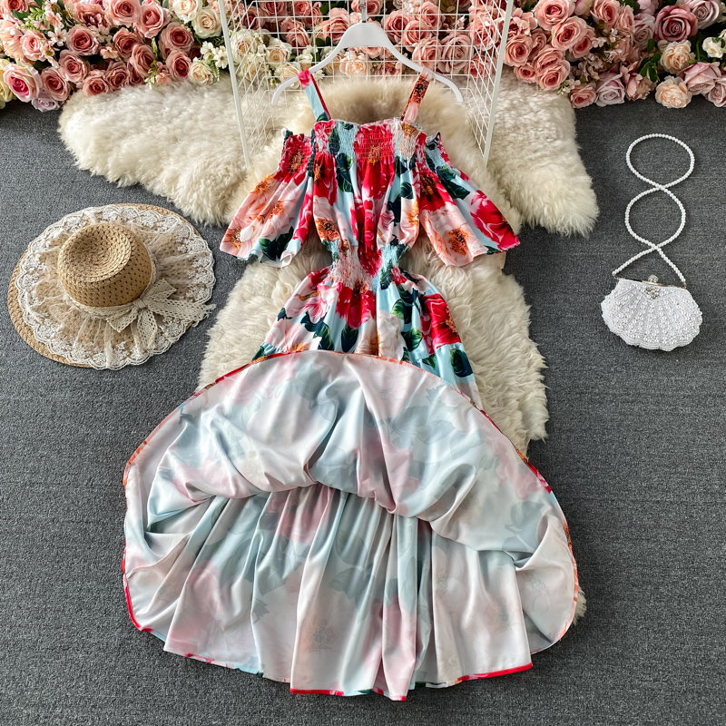 Cheap Dresses, Buy Quality Women’s Clothing Directly from China Suppliers:Summer Bohemian Printed Spaghetti Strap Dress Women Sexy Slash Neck Big Swing High Waist Short Sleeve A Line Vestidos New