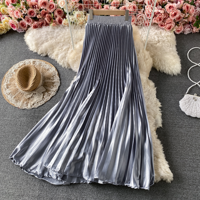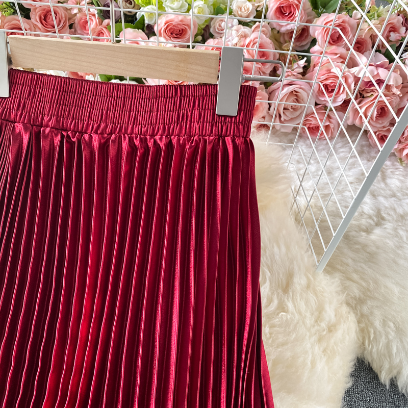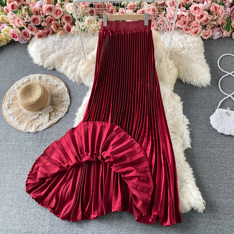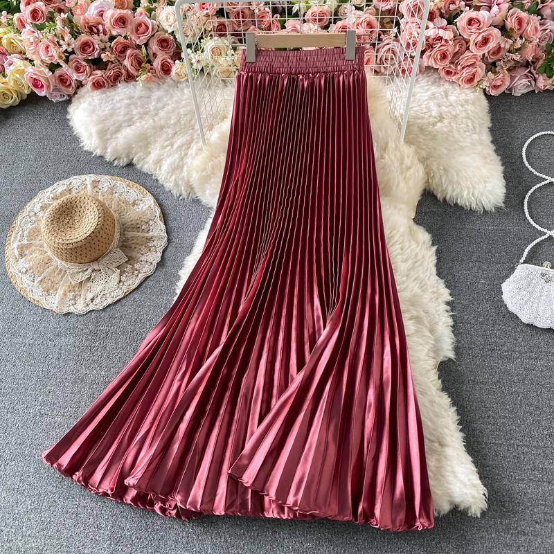 Vintage Red/Green/Blue/Black Satin Long Skirt Women Elegant Party High Waist Casual Faldas Female A-Line Slim Draped Saia