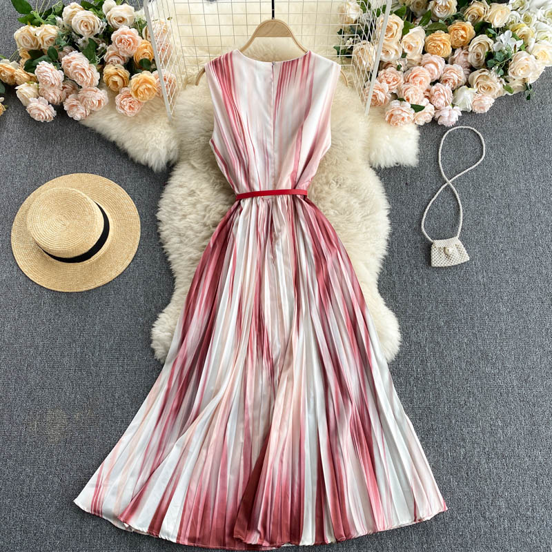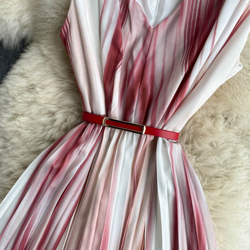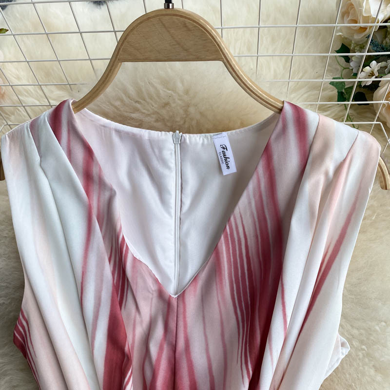 Vintage Tie Dye Pleated Dress Women Sexy V-Neck Sleeveless Vestidos Female Summer Beach Party Irrgular Draped Robe Casual New