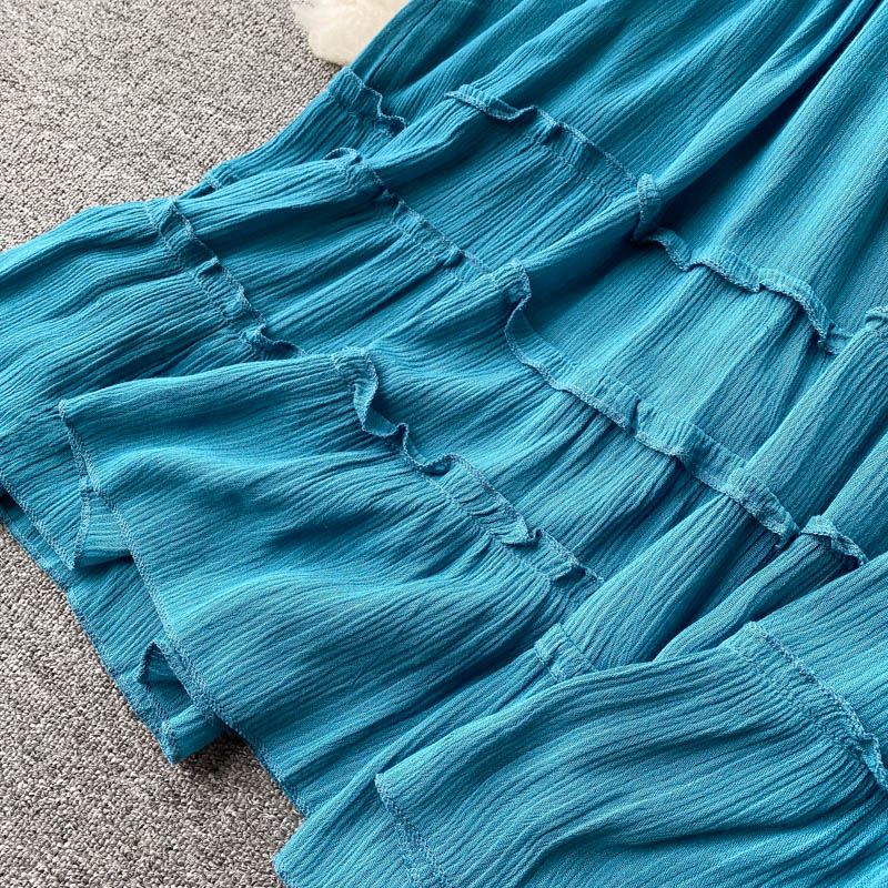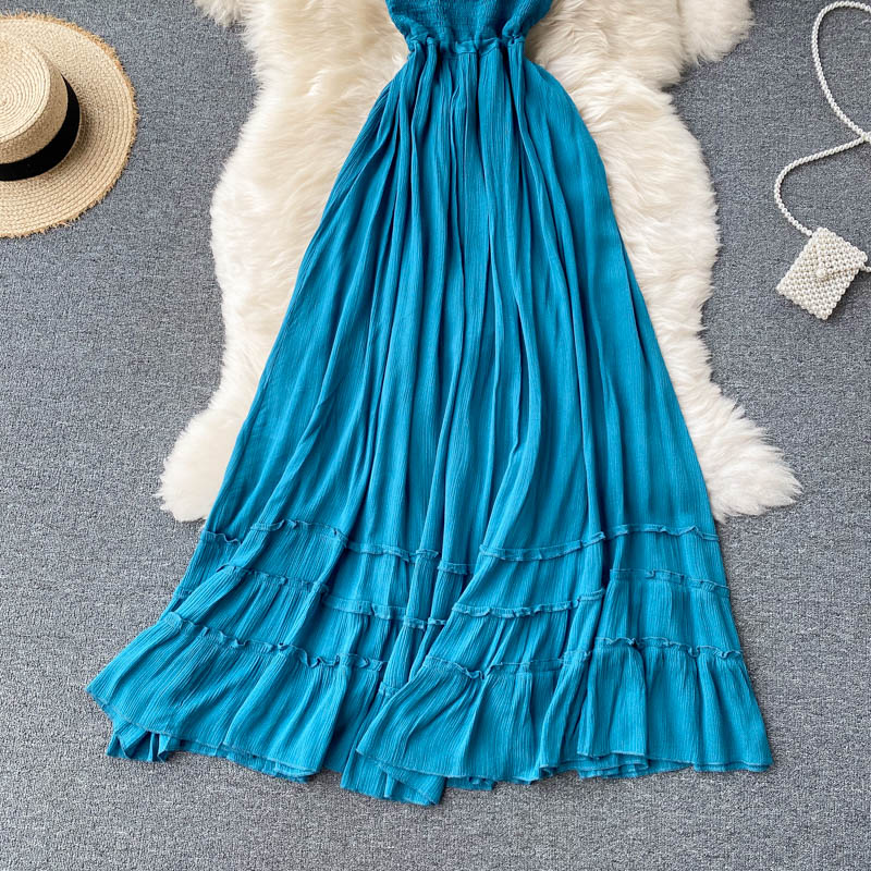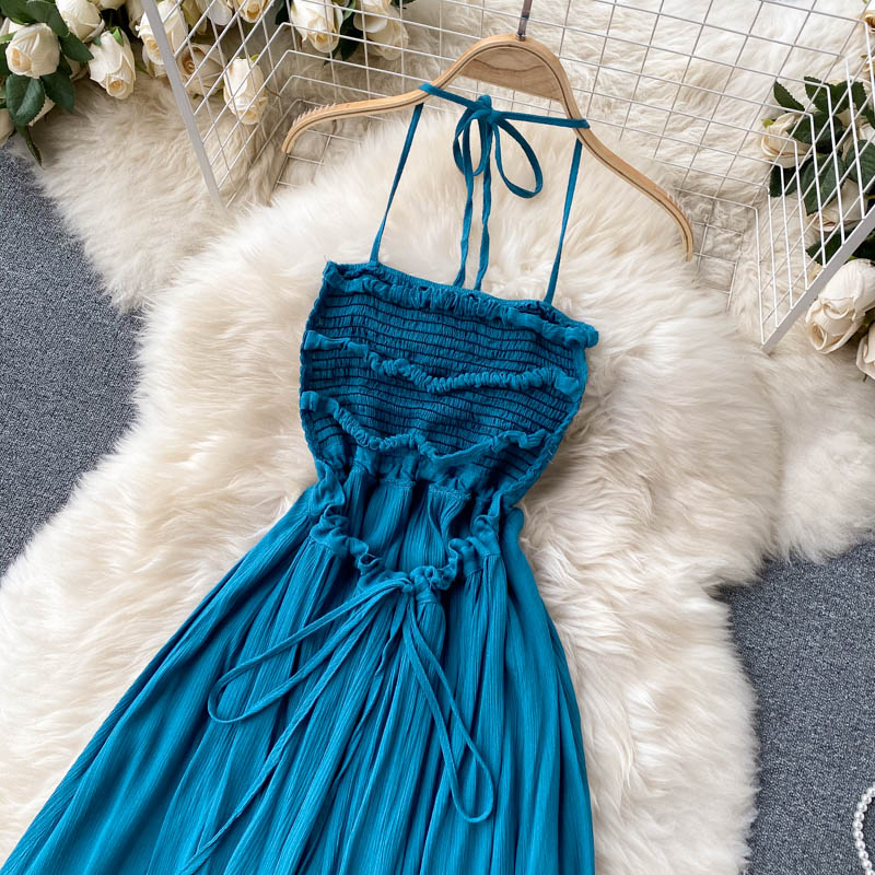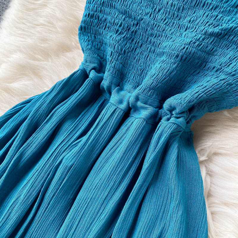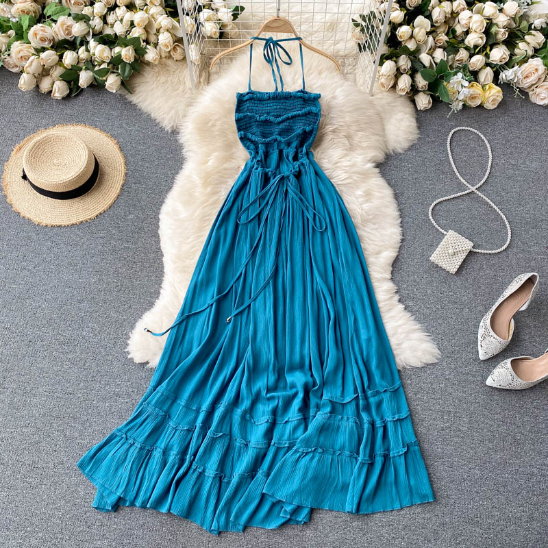 Sexy Blue Spaghetti Strap Long Dress Women Beach Holiday Open Back High Waist Strapless Vestidos Elegant A-Line Robe Summer