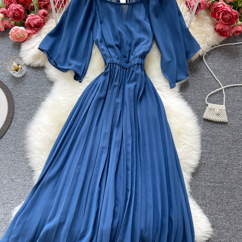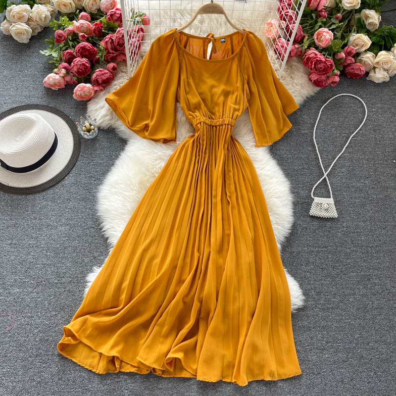 Cheap Dresses, Buy Quality Women’s Clothing Directly from China Suppliers:Vintage Women Chiffon Pleated Dress Summer Round Neck Short Sleeve High Waist Green/Red/Purple Draped Vestidos Female New