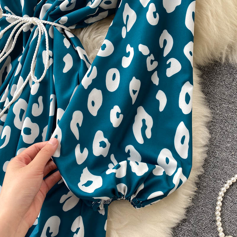 Sweet Square Collar Lace Chiffon Printed Midi Dress Women Elegant Flare Long Sleeve High Waist Vestidos Bohemian Spring New