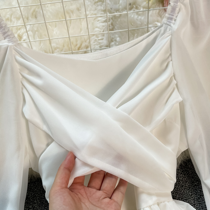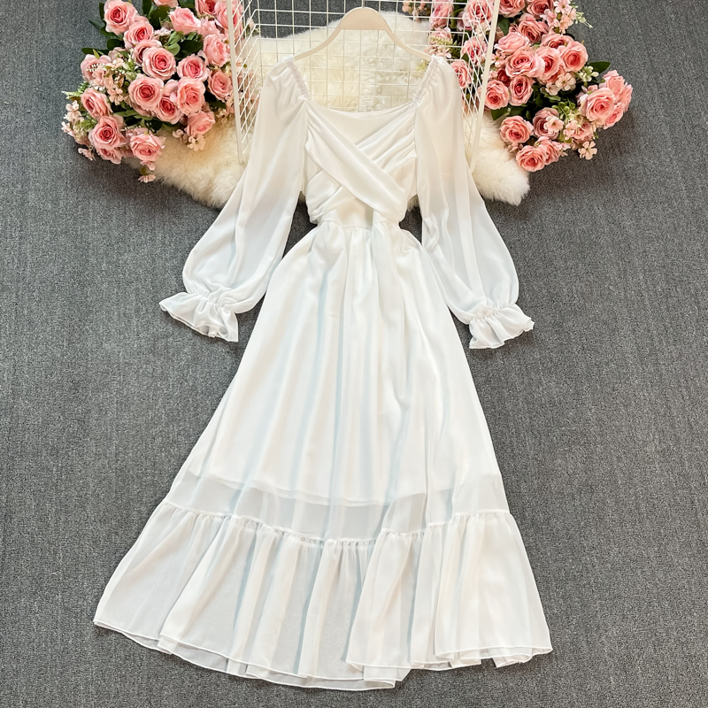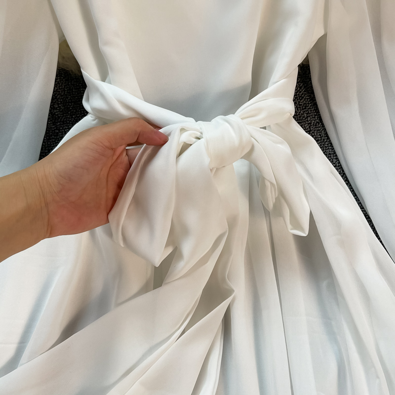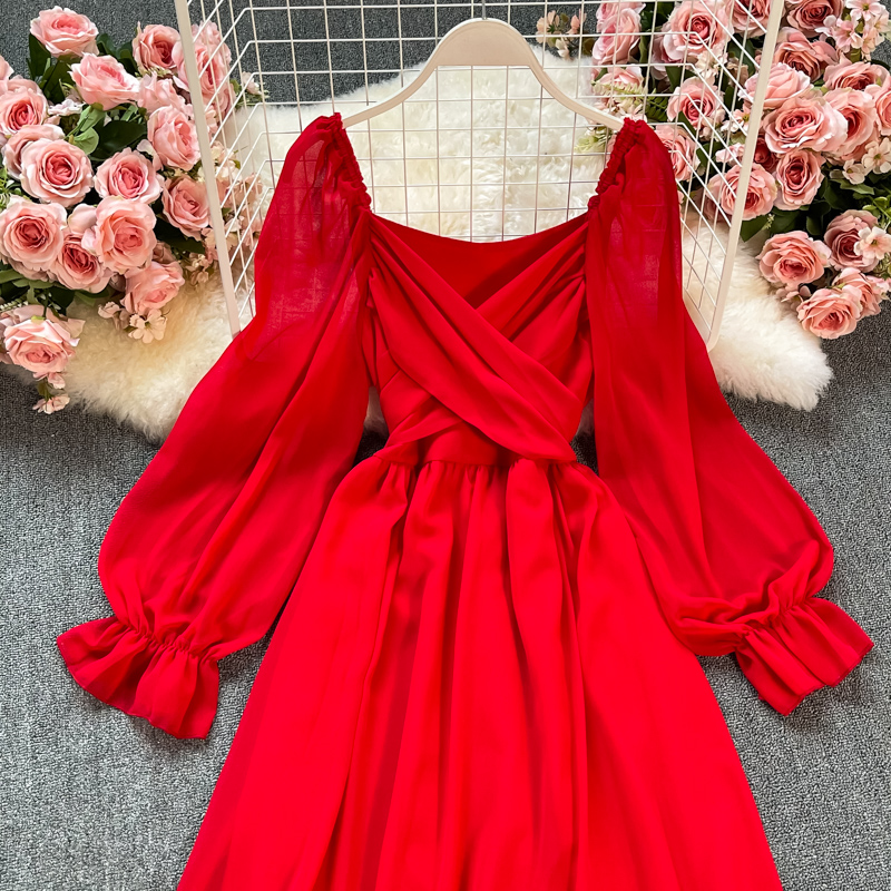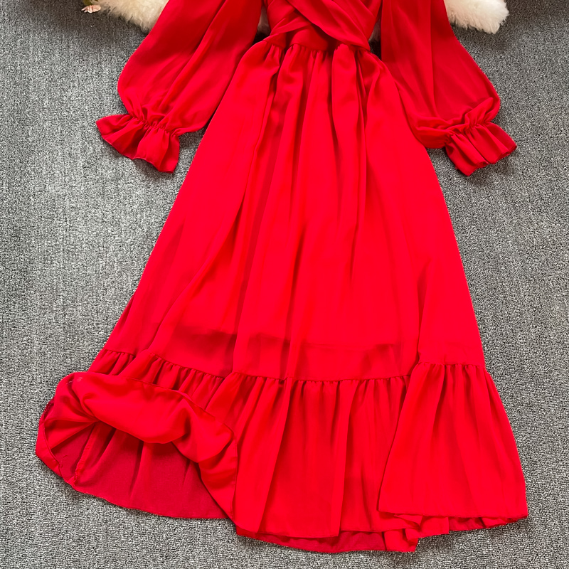 Sexy Red/White Long Dress Women Beach Holiday Vestidos Elegant V-Neck Puff Sleeve High Waist Bandage Robe Spring Summer