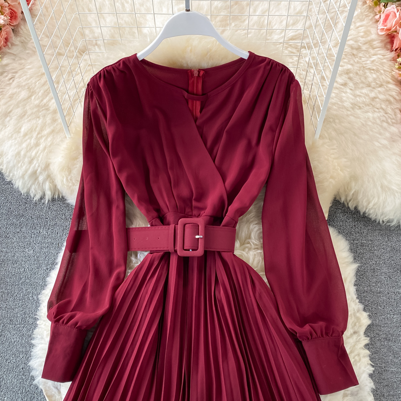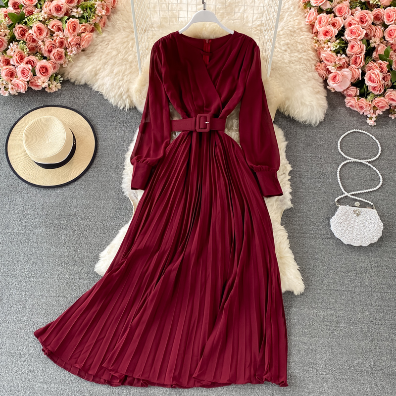 Cheap Dresses, Buy Quality Women’s Clothing Directly from China Suppliers:Women Purple/Red Hollow Out Pleated Long Dress Vintage Round Neck High Waist Draped Maxi Vestidos Female Spring Summer New