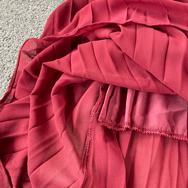 Summer Sexy Red Irregular Party Dress Women Vintage Slash Neck Sleeveless High Waist Ruffle Vestidos Female Casual Robe New