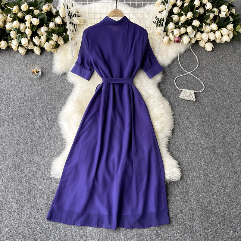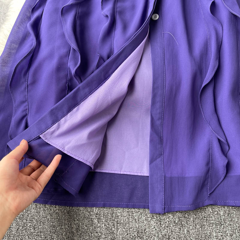 Vintage Purple Dress Women Elegant Ruffle Turn-Down Collar High Waist A-Line Casual Vestidos With Sashes Female Summer Plus Size