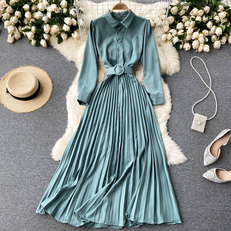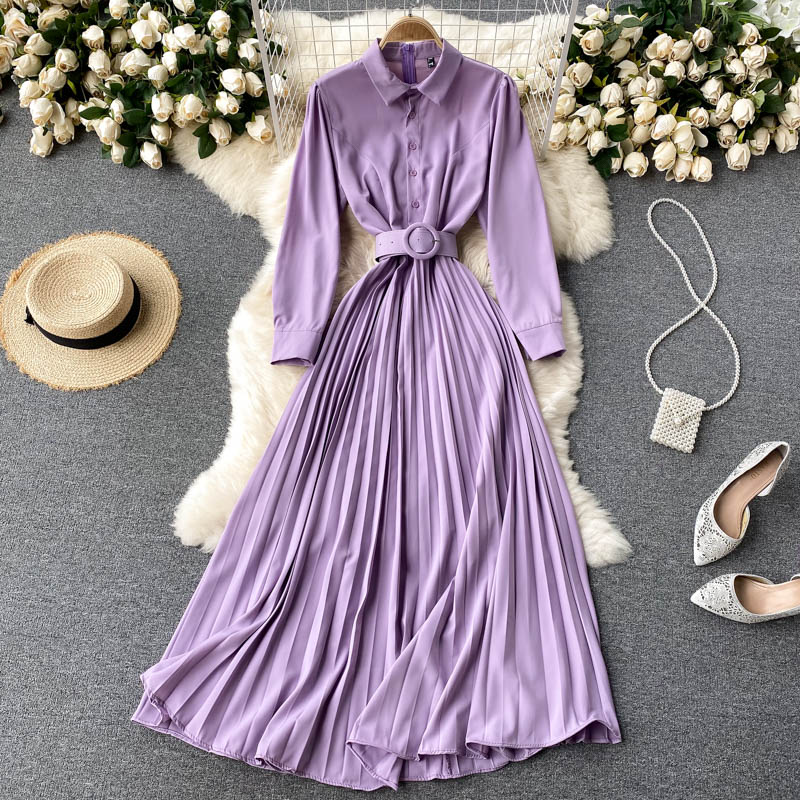 Cheap Dresses, Buy Quality Women’s Clothing Directly from China Suppliers:Purple/Yellow/Black Draped Long Dress Women Vintage Single Breasted Long Sleeve Pleated Robe Female Elegant Robe Spring Autumn