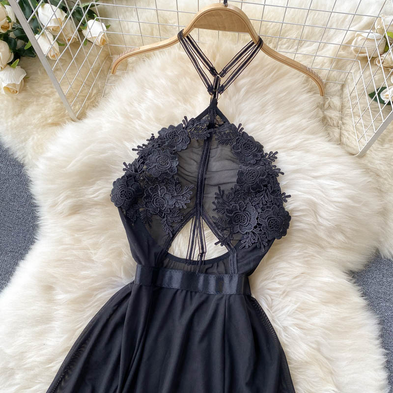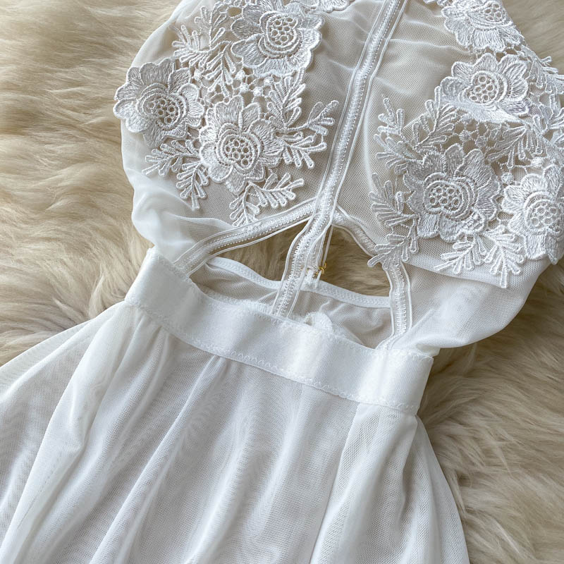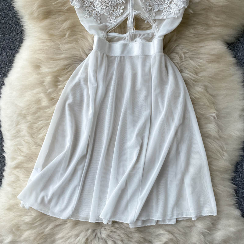 Summer Beach See Through Mesh Embroidered Mini Dress Women Holiday Party Vestidos Female Hollow Out High Waist Dresses New