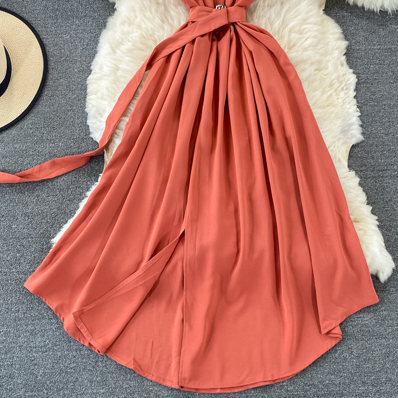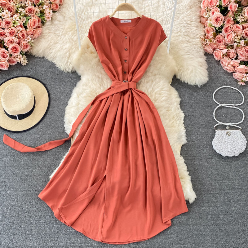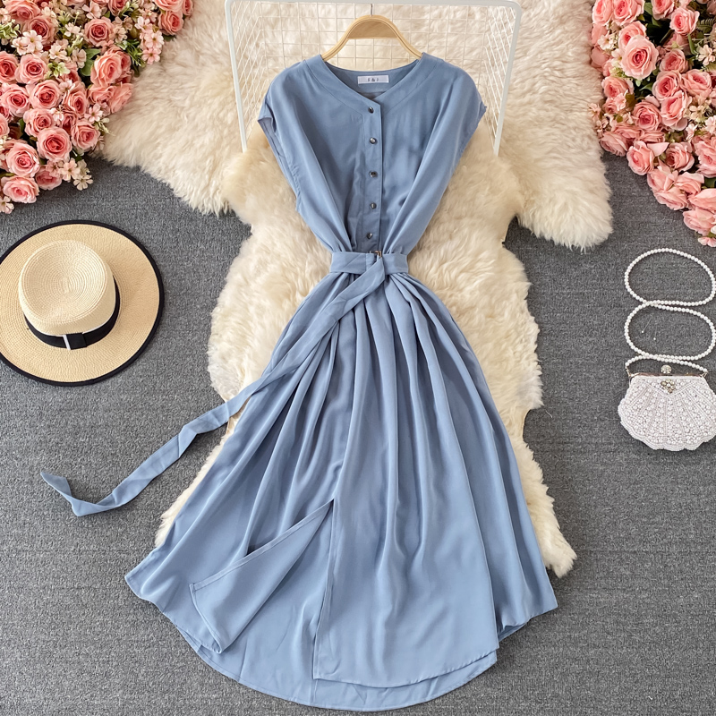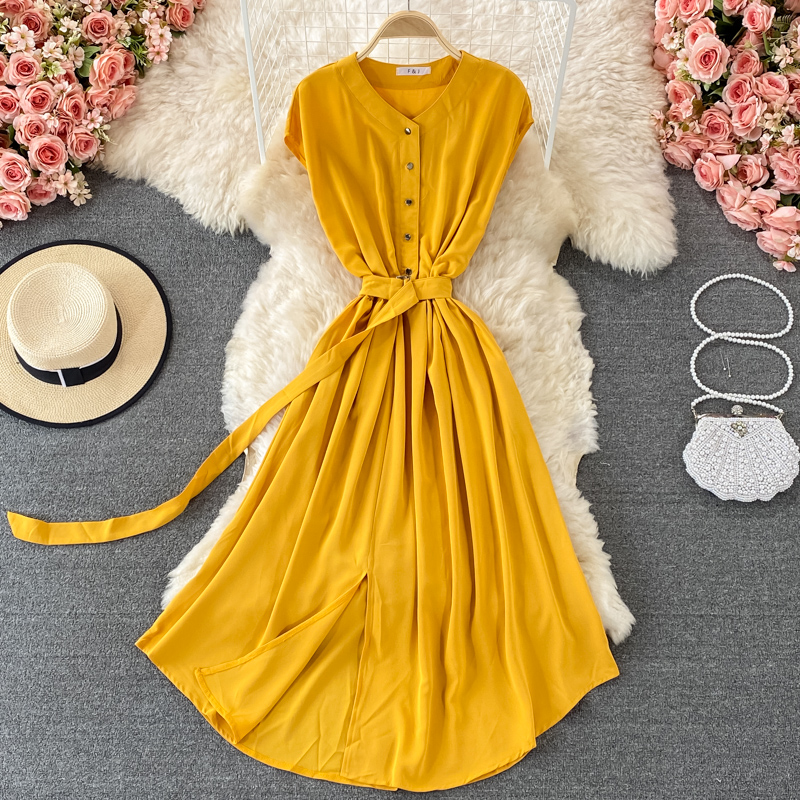 Cheap Dresses, Buy Quality Women’s Clothing Directly from China Suppliers:Women Blue/Black/Yellow Single Breasted Midi Dress Summer V Neck Sleeveless High Waist Vestidos With Sashes Female Fashion