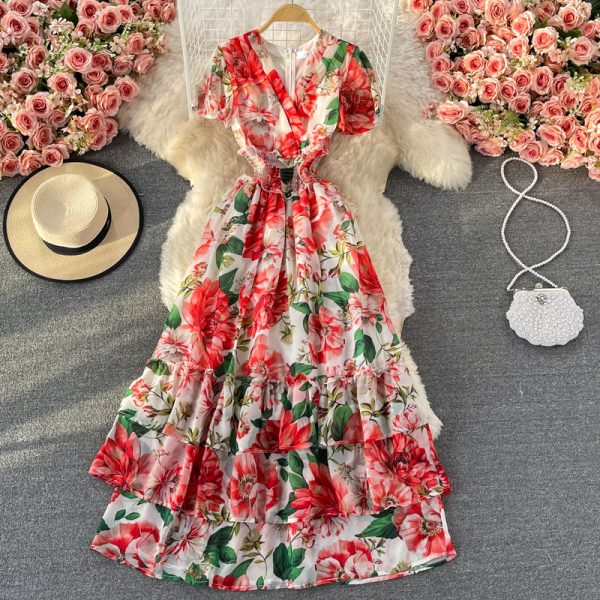 Holiday Women Chiffon Dress Summer Elegant Slash Neck Short Sleeve Ruffle A-line Casual Vintage Dresses For Female Vestidos