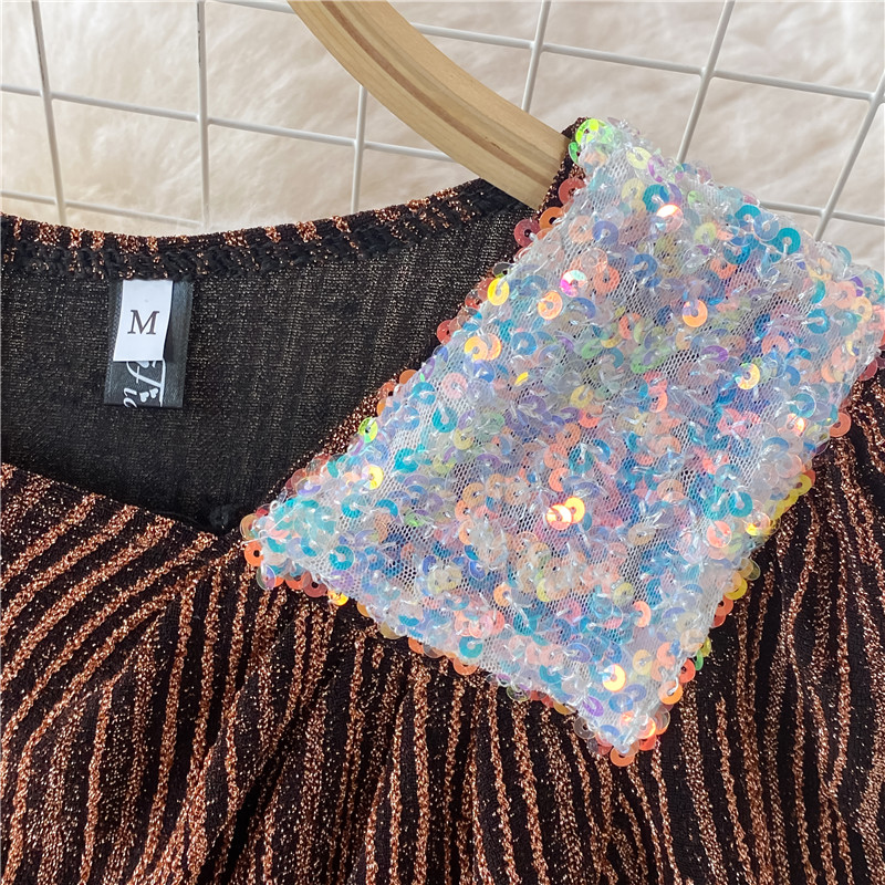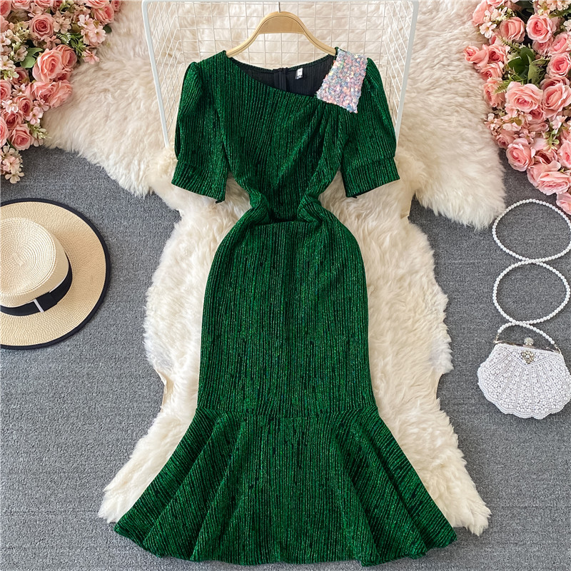 Cheap Dresses, Buy Quality Women’s Clothing Directly from China Suppliers:Green/Brown/Black Sequin Party Midi Dress Women Summer Skew Collar Short Sleeve High Waist Vintage Mermaid Vestidos Female