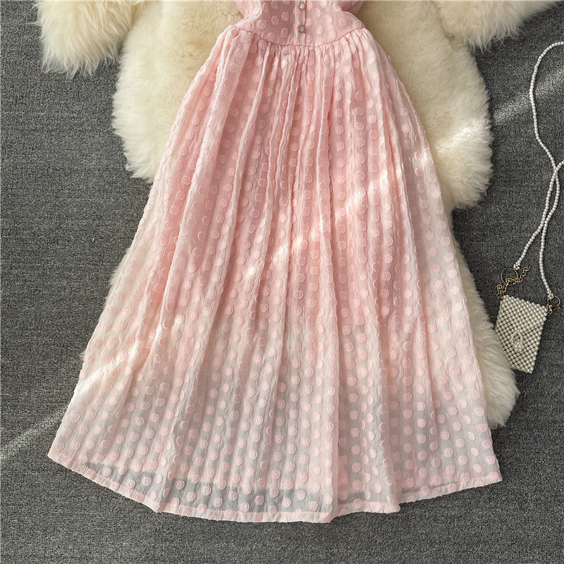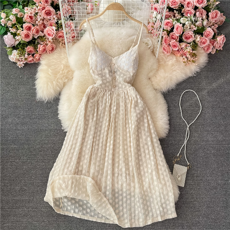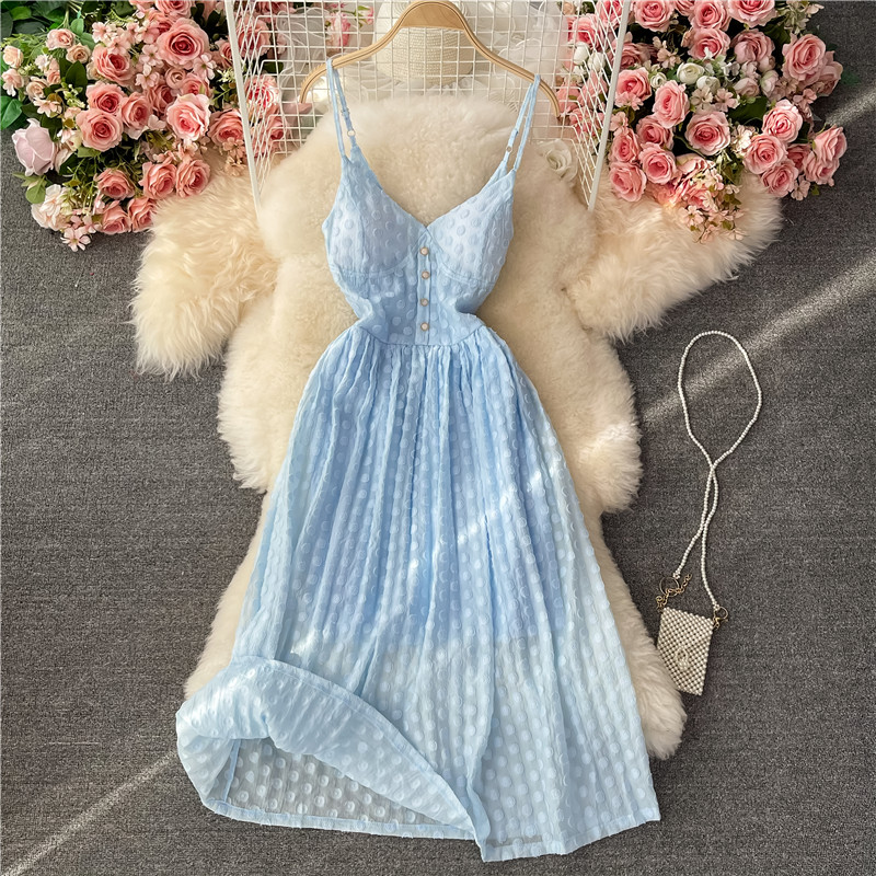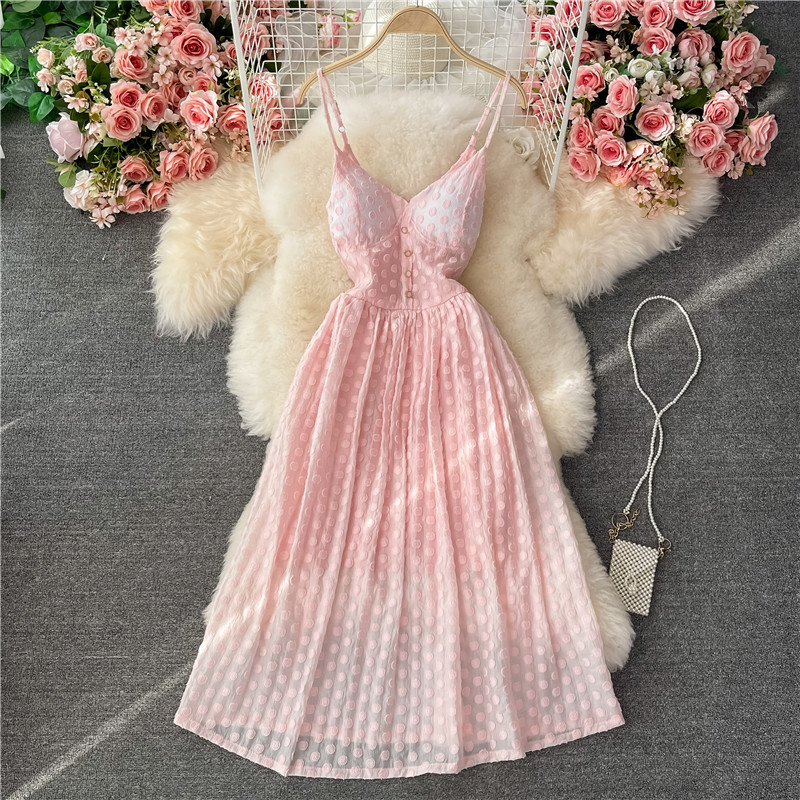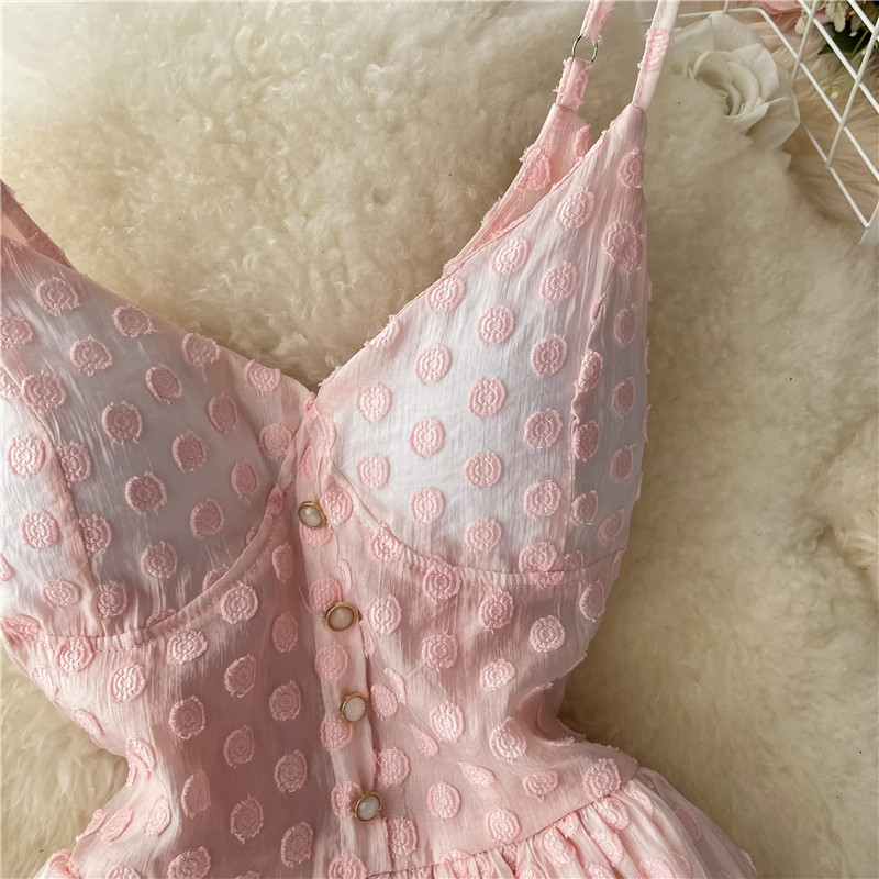 Sexy Polka Dot Spaghetti Strap Dress Women Summer Beach Party Strapless Vestidos Female V-Neck A-Line Pink/Blue/Beige Robe