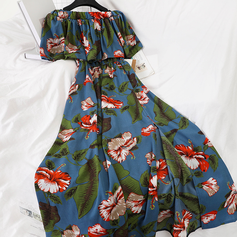 Cheap Dresses, Buy Quality Women’s Clothing Directly from China Suppliers:Bohemian Women Green/Pink/Blue Printed Midi Dress Sexy Slash Neck Ruffle High Waist A Line Sexy Vestidos Summer Female New