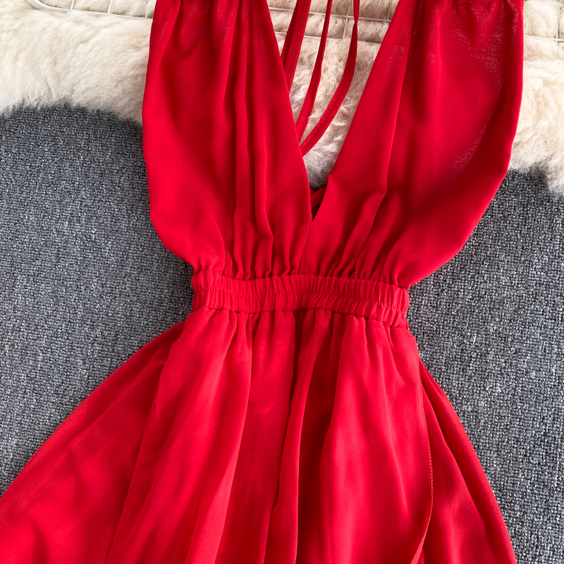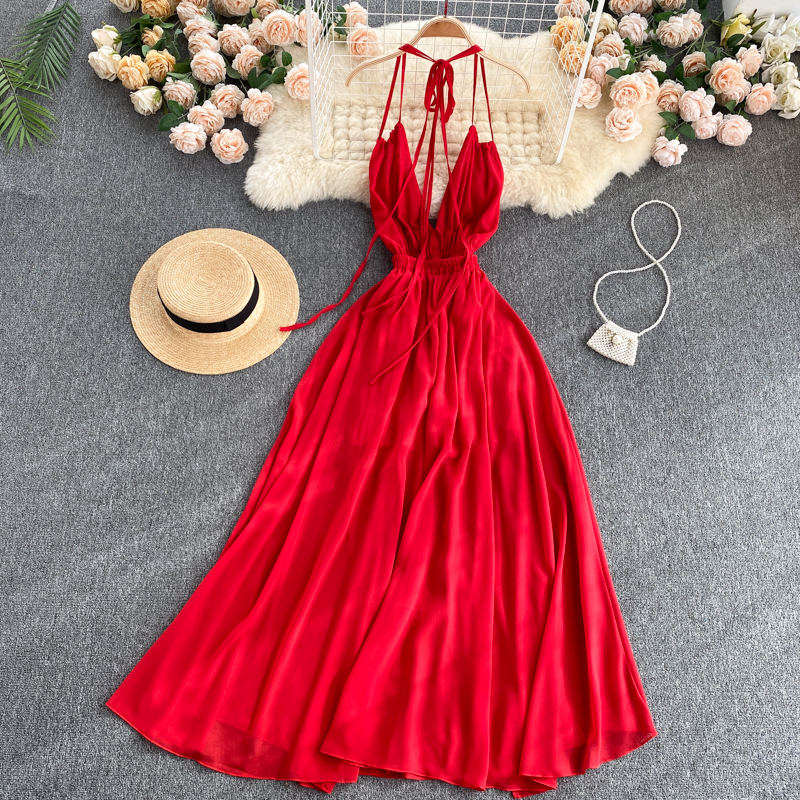 Summer Red/Blue Sexy Halter Bandage Long Dress Women Beach Party Vestidos Female Deep V-Neck Open Back Vestidos Female New