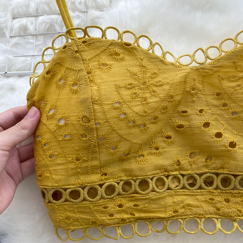 Summer Bohemian Hollow Out 2pcs Set Women Sexy V-Neck Spaghetti Strap Short Tops + High Waist Ruffle Mini Skirt Female Suit
