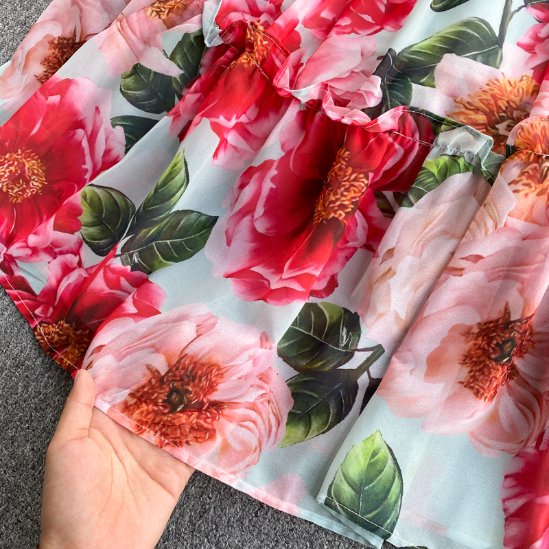 Holiday Women Chiffon Dress Summer Elegant Slash Neck Short Sleeve Ruffle A-line Casual Vintage Dresses For Female Vestidos