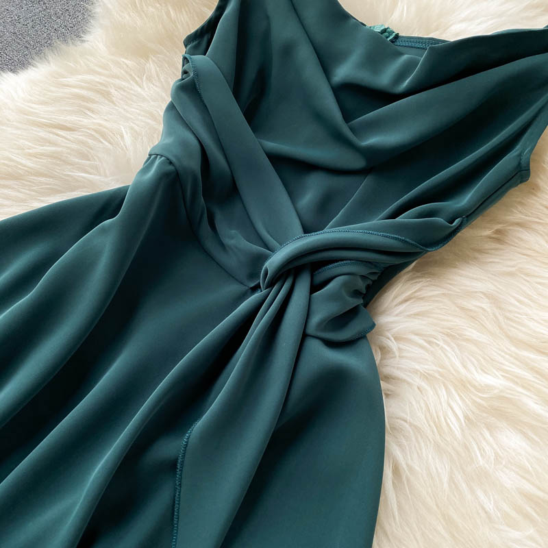 Sexy Green/Black Spaghetti Strap Dress Women Casual Twist High Waist Sleeveless Irregular Vestidos Female Summer Party Robe