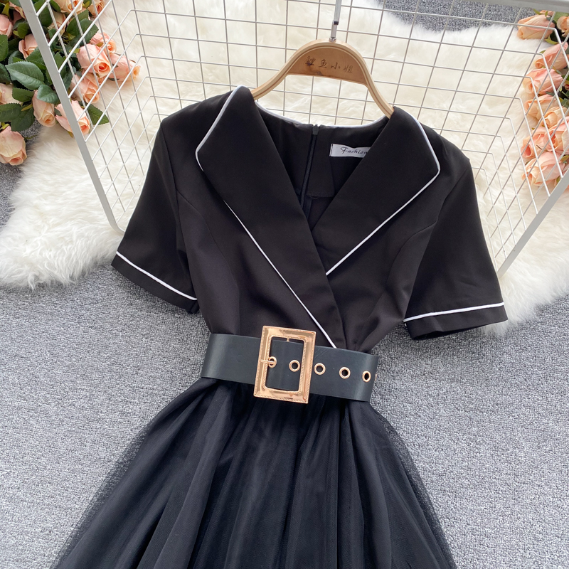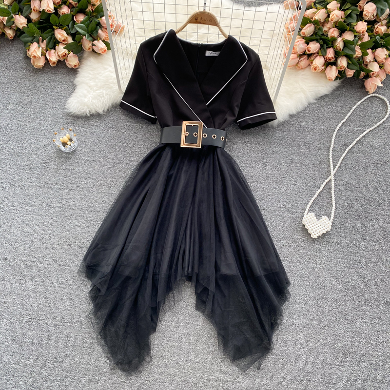 Cheap Dresses, Buy Quality Women’s Clothing Directly from China Suppliers:Summer Sexy Irregular Mesh Patchwork Dress Women Vintage Turn Down Collar Short Sleeve High Waist Vestidos With Sashes New