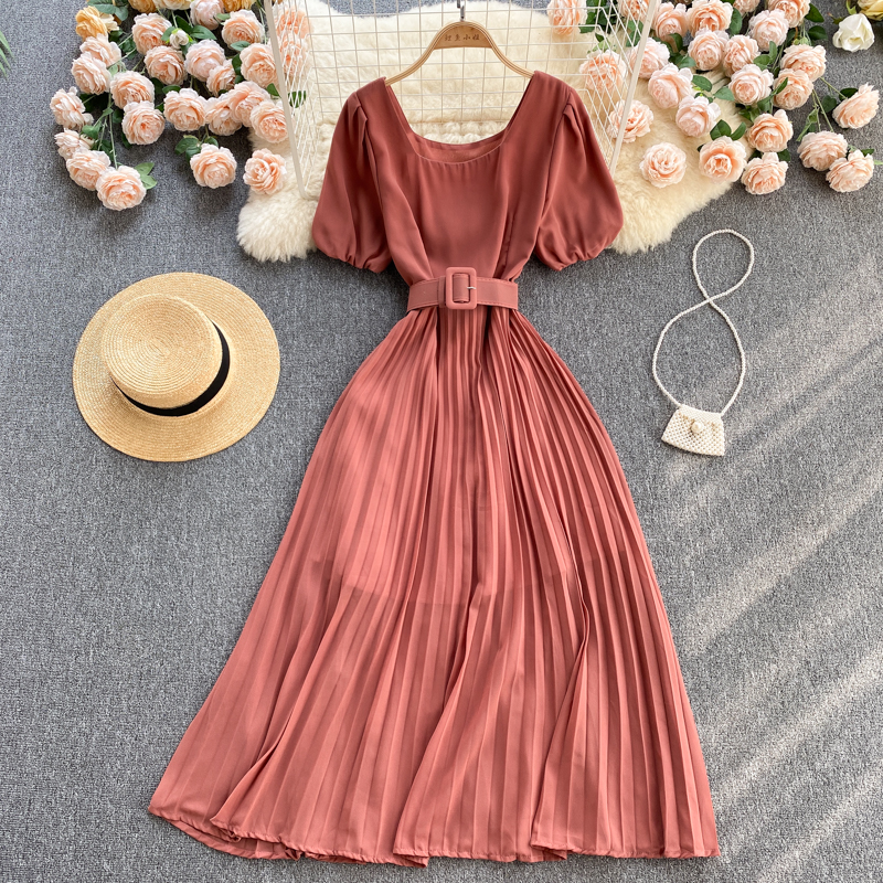 Cheap Dresses, Buy Quality Women’s Clothing Directly from China Suppliers:Red/Green/Purple Pleated Long Dress Women Elegant Square Collar High Waist Draped Vestidos With Sashes Female Robe Summer